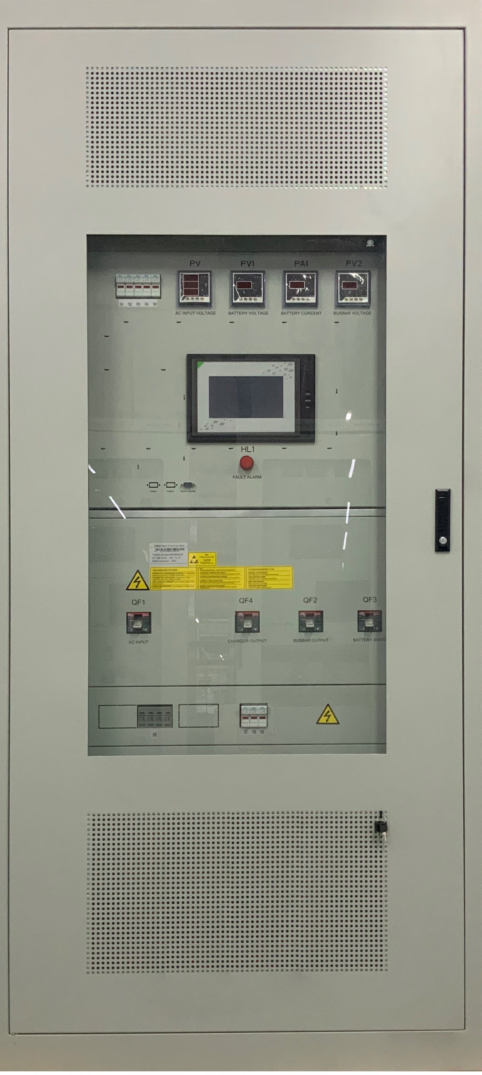 分屏系統(tǒng)II由一面充電屏、一面饋電屏和多面電池屏組成,充電屏包括交流配電、整流模塊、監(jiān)控系統(tǒng)、降壓?jiǎn)卧蛇x硅鏈);饋電屏包括絕緣監(jiān)測(cè)儀、直流饋電單元。
